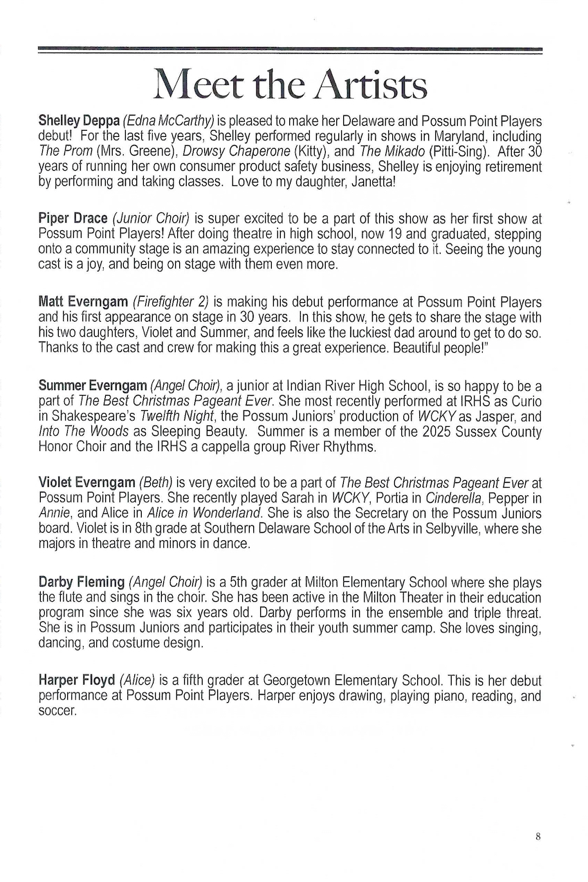 PPP is supported, in part, by a grant from the Delaware Division of the Arts, a state agency, in partnership with the National Endowment for the Arts. The Division of the Arts promotes Delaware arts events on www.DelawareScene.com